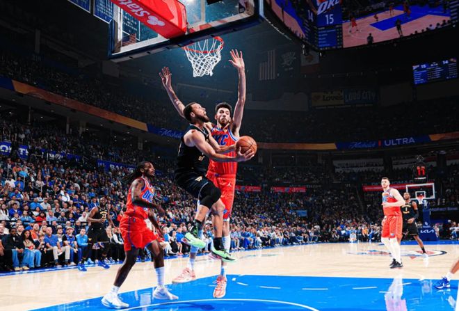 易边再战,库里外线补防上迎,第三节初被吹个人本场第四次犯规,这个没看懂?哈滕高位策应送击地妙传,米切尔上篮轻松得手,科尔脸色铁青无奈叫停。库里上线挤过挡拆跟防再次被吹第五犯,科尔依旧选择不换下。亚历山大攻守转换加速突破,顶开格林后小拉杆上篮打进2+1,随后弧顶大空位三分再投进,雷霆将分差彻底拉开至30分。