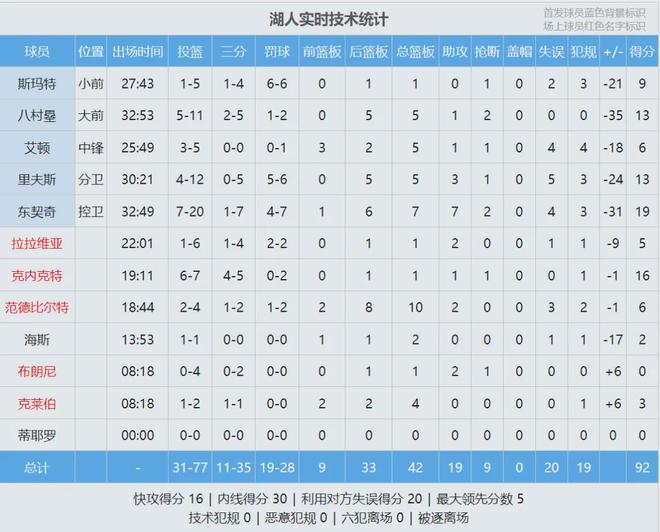 此役过后,雷霆12胜1负继续领跑全联盟。最后看看数据,说说心情: